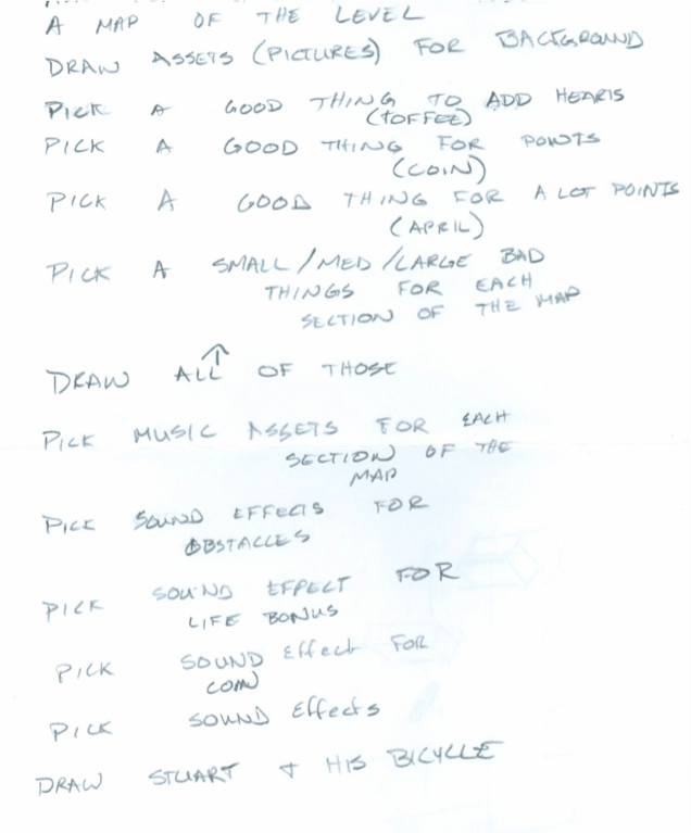 While the idea was intriguing to all, the obvious roadblock of how to actually create a video game consumed our discussion for days. Their solutions implied youthful simplicity.